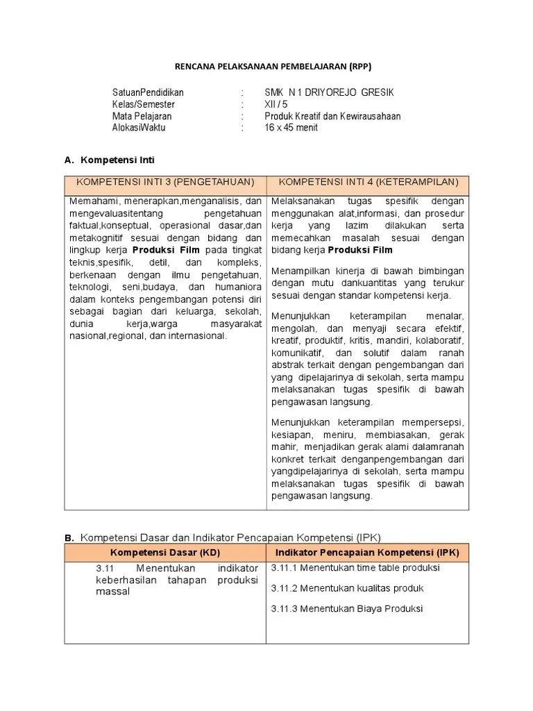 Rpp kelas xii produk kreatif dan kewirausahaan kur.
